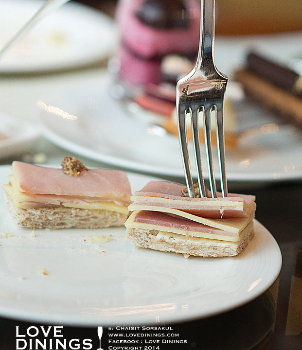 การทานอาฟเตอร์นูนทีนั้น ปกติจะเริ่มจากของคาวไปยังของหวาน ในที่นี้คือเริ่มจากชั้นล่างขึ้นไปยังชั้นบนสุดนั่นเอง