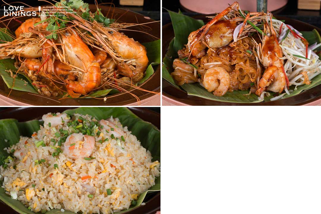 กุ้งผัดน้ำมะขาม , ข้าวผัด , ผัดไทยกุ้งแม่น้ำ