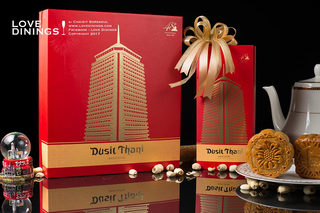 ขนมไหว้พระจันทร์ของโรงแรมดุสิตธานี กรุงเทพฯ บรรจุในกล่องบรรจุภัณฑ์สวยหรู ออกแบบพิเศษเป็นสัญลักษณ์รูปตึกโรงแรมดุสิตธานี กรุงเทพฯ ในโอกาสครบรอบ 48 ปี ของโรงแรมฯ โดยจะมีกล่องแบบ 2 ชิ้น และ 4 ชิ้น สามารถสั่งจองได้แล้วตั้งแต่วันที่
