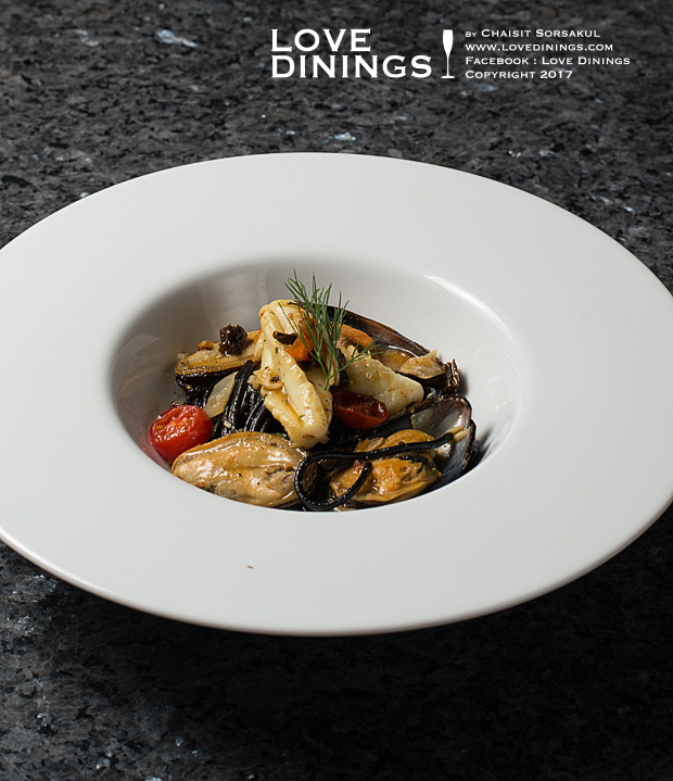 5.Sauteed mussel spaghetti squid, saffron sauce 450++ THB